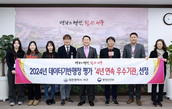 [Ytv영상스토리] 대전 서구가 2024년 행정안전부 주관‘데이터기반행정 평가’에서 4년 연속 최고등급인‘우수기관’ 으로 선정됐다고 18일 밝혔다.