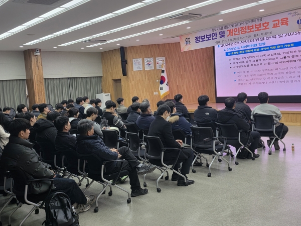이날 교육은 논산시 디지털정보과 전산정보팀 소속 문세광 정보보안 전문가가 직접 강의를 진행해 예산 절감하는 데 도움을 준 것은 물론 △2025년 사이버보안 전망 및 대응 방안 △최신 랜섬웨어 동향 및 대응 전략 △개인정보 보호 실무 지침 등을 주제로 심도 있게 강연을 진행해 호응을 얻었다.