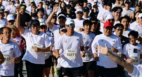 ‘2024 한글런’은 기부 마라톤 연예인으로 유명한 션과 함께 세종대왕 나신 날을 상징하는 5.15㎞와 한글날을 상징하는 10.9㎞를 시민과 함께 달린 행사다.
