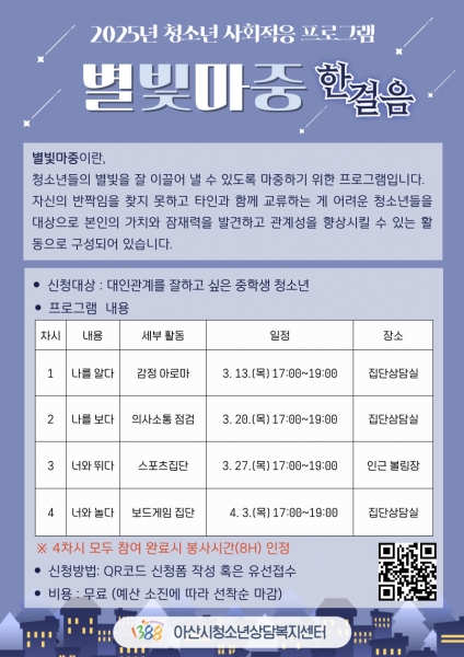 아산시청소년상담복지센터, 자기이해 및 관계증진을 위한 프로그램 “별빛마중” 참가자 모집