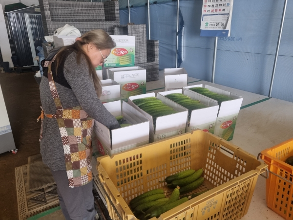 2월에 출하되고 있는 오이는 지중난방, 온풍기 등 난방시설을 활용헤 가온재배한 것으로 지난해보다 8일 빠르게 출하됐다.