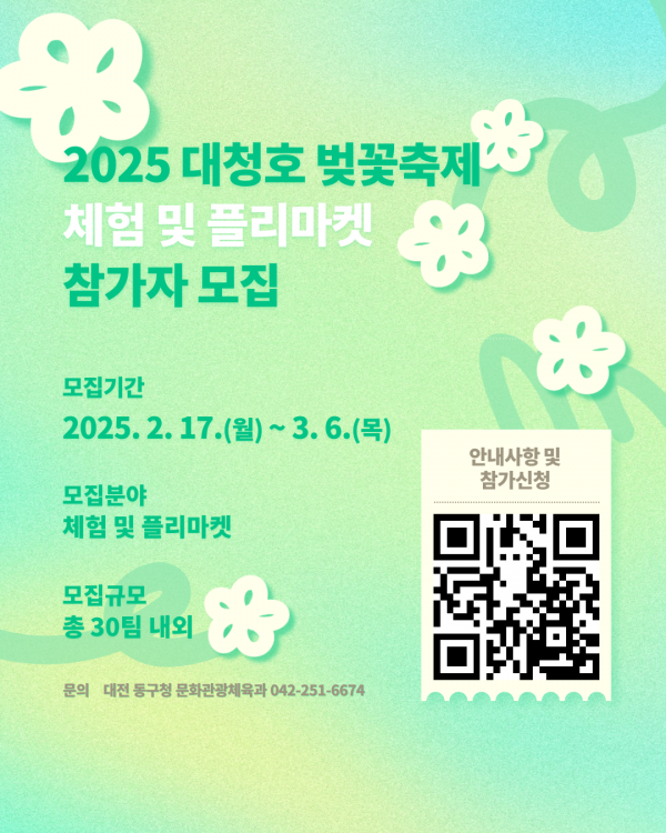 대전 동구, ‘2025 대청호 벚꽃축제’ 체험 및 플리마켓 참가자 모집