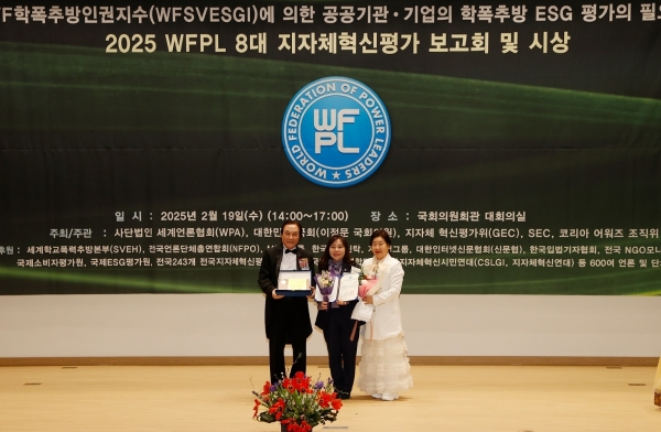 세계청년리더총연맹 부설 지자체 혁신평가위가 2025년 2월 19일 오후 국회의원회관 대회의실에서 공동 주최한 2025 WFPL 8대 지자체 혁신평가 대상 시상식에서 김민숙 의원은 최고 평점을 받아 ‘대상’을 수상했다.
