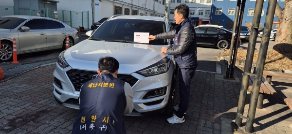 천안시 서북구, 오는 3월 체납차량 번호판 영치증 안전봉투 도입