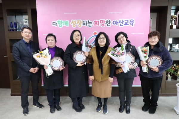 [Ytv영상스토리] 아산교육지원청은 2월 25일 2층 교육장실에서 20년이상 학교에서 교육발전을 위해 헌신하다 정년퇴임을 하는 교육공무직원의 공로를 기리기 위해 송공패를 전달하고 교육간담회를 가졌다.