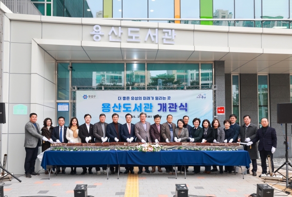 유성구는 25일 정용래 유성구청장, 김동수 유성구의회 의장, 지역 주민 등 200여명이 참석한 가운데 용산도서관 개관식을 개최했다.