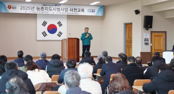 [Ytv영상스토리] 태안군이 지난 25일 태안군농업기술센터 대강당에서 가세로 군수와 지역 농업인 단체 관계자 등 120여명이 참석한 가운데 ‘2025년도 농촌지도 시범사업 사전교육’을 개최했다고 밝혔다.