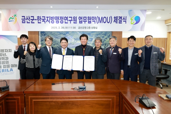 박범인 금산군수는 “이번 협약이 양 기관의 지속 가능한 성장과 발전을 위한 시발점이 되기를 바란다”며 “한국지방행정연구원의 전문성을 바탕으로 금산군이 한 단계 더 도약할 수 있을 것”이라고 말했다.
