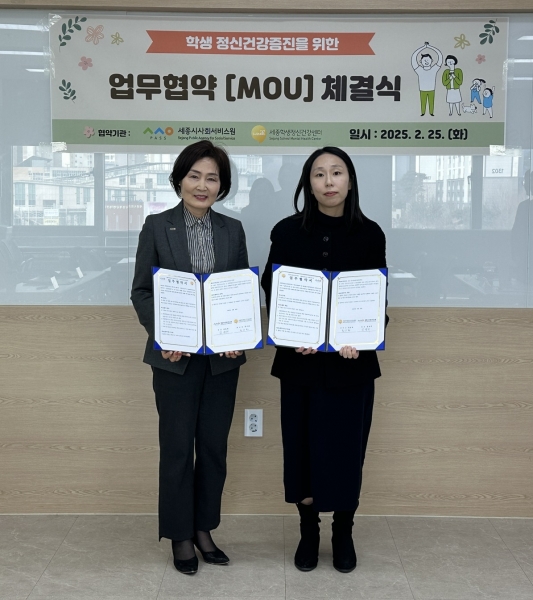김명희 세종시사회서비스원장은 “이번 협약을 통해 학생 정신건강 문제해결을 위한 협력이 더욱 강화될 것으로 기대한다”며 “앞으로도 학생 정신건강 증진을 위한 다양한 지원사업을 적극 추진하겠다”고 말했다.