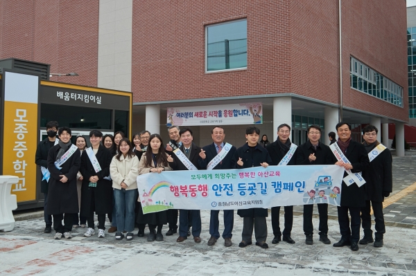 이날 행사에 참석한 조일교 아산시장 권한대행은 신세균 아산교육지원청 교육장과 함께 아산모종중 학생들의 첫 등굣길 안전을 챙겼다.