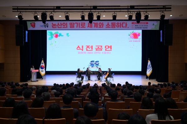 콰르텟 제이의 식전 공연으로 문을 연 3월 월례모임은 개회 및 국민의례, 지역발전유공자에 대한 표창수여 등의 순으로 진행됐다.