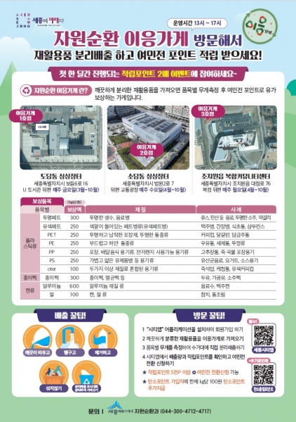 [Ytv영상스토리] 세종시가 투명페트병·종이팩 등 고품질 재활용품 수거 활성화를 위해 올해 ‘자원순환 이응가게’를 3곳으로 확대·운영한다고 5일 밝혔다.