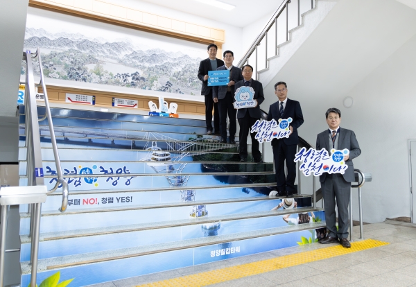 계단에는 ‘청렴한 청양’, ‘부패 NO, 청렴 YES’ 라는 청렴을 다짐하는 문구가 새겨져 있어 청사를 방문하는 군민과 공직자들에게 자연스럽게 청렴의 가치를 환기시킬 수 있다.