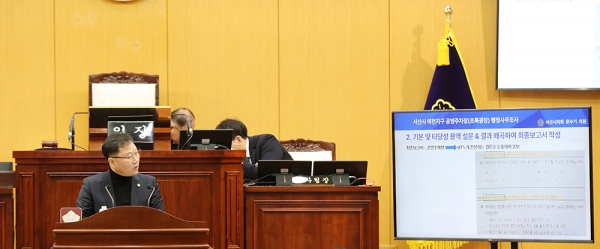 그러면서 행정도 사람이 하는 일인지라 진정으로 시민을 위한 사업이라면 어느 정도의 잘못을 이해하지 못할 이유도 없지만, 이 사건 사업은 신뢰할 수 없는 용역에 대한 수용의 정도, 공익을 위한 사업인지에 대한 심각한 의문, 잘못된 행정을 바로잡아 가는 과정에서 지자체의 대응 태도, 무엇보다 강행법규 위반이라는 치유될 수 없는 법 절차 위반으로 이는 재량의 범위를 벗어난 행정임에도 이를 대수롭지 않게 여기는 서산시의 태도 등을 볼 때 행정사무조사를 실시하지 아니할 수 없다고 주장했다.