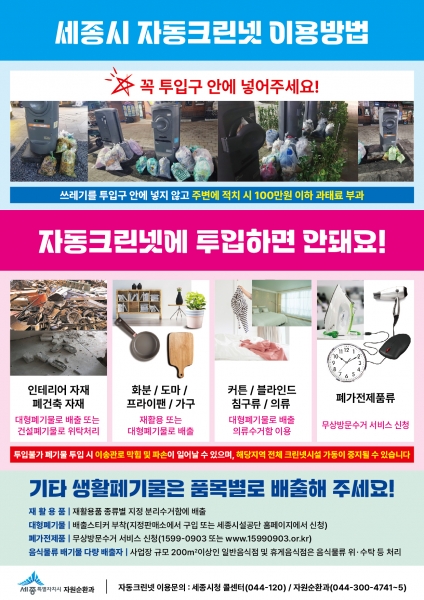[Ytv영상스토리] 세종시가 오는 17일부터 28일까지 공동주택, 상가 등 자동크린넷 상습 막힘지역을 중심으로 생활폐기물 불법배출 근절을 위한 집중 단속에 나선다.