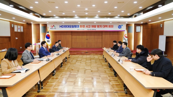 시는 5일 시청 중회의실에서 홍순광 부시장 주재로 HD현대오일뱅크㈜의 책임 있는 경영 관계자와 함께 긴급 환경 사고 재발 방지대책 회의를 개최했다.