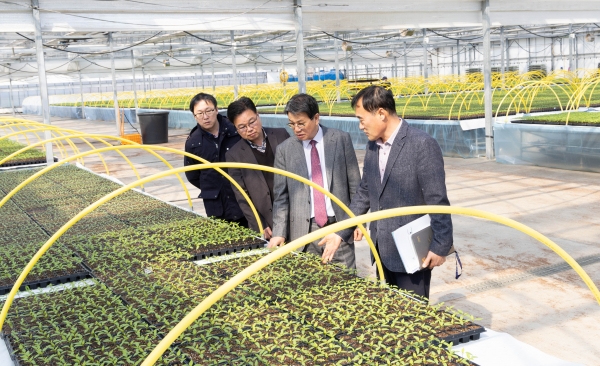 김 군수는 이날 육묘 상태를 직접 확인하며 생육 상황과 병해충 예방 대책을 점검했다.
