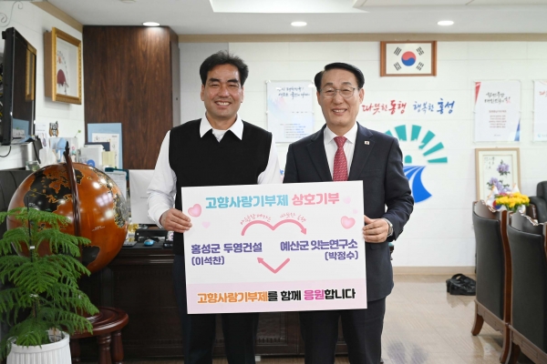 두영건설은 지난 기간 홍성군에서 진행된 각종 공사에 참여해 지역사회와도 깊은 인연을 이어온 업체로 이석찬 대표는 관내 시설물 보수 및 정비와 같은 시설에만 국한되는 것이 아닌 사람 자체를 도울 수 있는 방법을 찾던 중 이번 고향사랑기부제 상호기부 소식을 듣게 되어 앞장서 기부에 응했다.