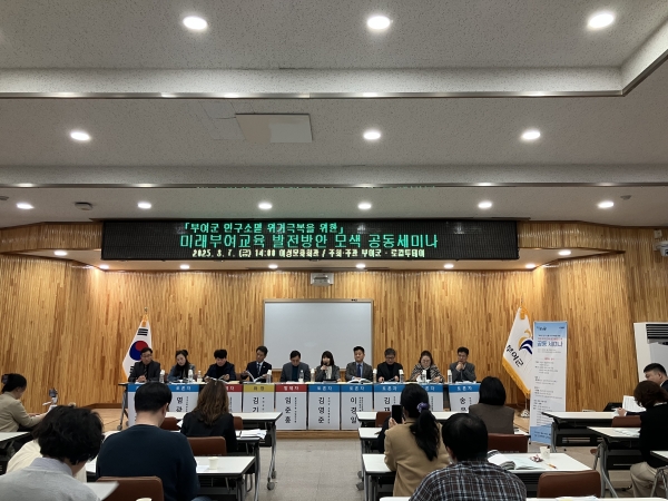 [Ytv영상스토리] 부여군은 지난 7일 부여여성문화회관에서 ‘부여군 인구소멸 위기 극복을 위한 미래부여교육 발전방안 모색 공동세미나’를 개최했다.
