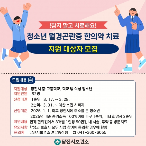 당진시보건소, 월경곤란증 여성 청소년 한의약 치료 대상자 모집
