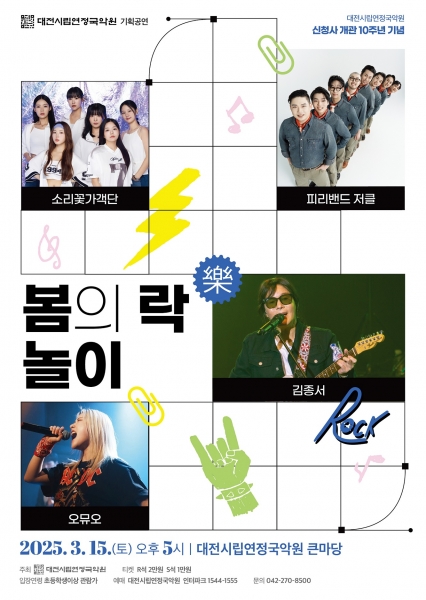 [Ytv영상스토리] 대전시립연정국악원은 국악원 문화예술단지 이전 10주년을 맞아, 국악 공연의 문턱을 낮추고 시민들에게 더욱 친숙한 무대를 선보이기 위해 오는 15일 오후 5시 국악원 큰마당에서 ‘봄의 락놀이’를 개최한다.