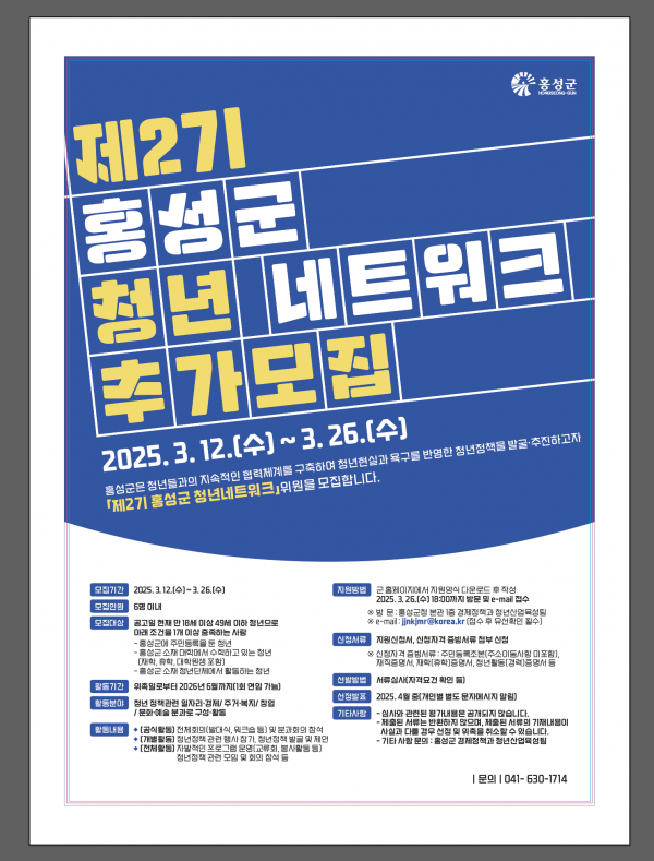 홍성군과 함께 성장할 청년을 찾습니다