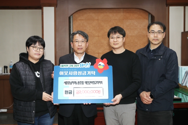 같은날 세종충남지역노동조합 태안군비정규직지회도 군청 부군수실에서 김용섭 지회장과 이재분 부지회장, 한계순 사무장 등이 참석한 가운데 기탁식을 갖고 성금 200만원을 군에 기탁했다.