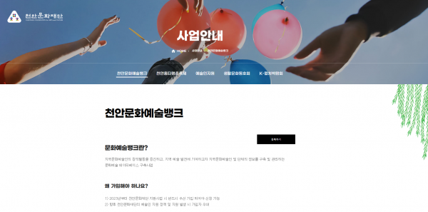 문화예술뱅크 등록은 천안문화재단 누리집을 통해 가능하다.
