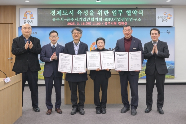 간담회에서는 공주시와 공주시기업인협의회, 국립공주대학교 KNU기업경영연구소 간에 활력 있는 경제도시 육성을 위한 긴밀한 업무 협력과 교류를 도모하기 위한 업무 협약이 체결됐다.