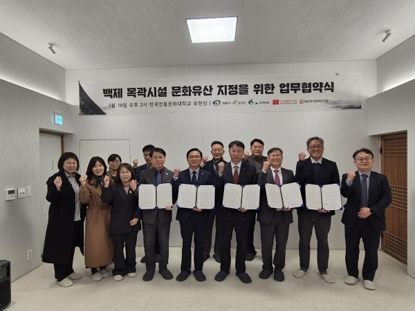 서천군을 비롯한 5개 기관은 지난 18일 한국전통문화대학교 유현당에서 업무협약을 체결하고 충남 도내에서 발굴된 백제 목곽시설의 가치를 공동 연구해 문화유산으로 지정하는 방안을 추진하기로 뜻을 모았다.