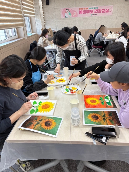 이번 태교교실은 아름다운 해바라기 그림을 그리며 오감을 자극하고 태아와 교감하며 나만의 작품을 완성하는 내용으로 임산부의 건강과 행복한 가정 분위기 조성을 위해 마련됐다.
