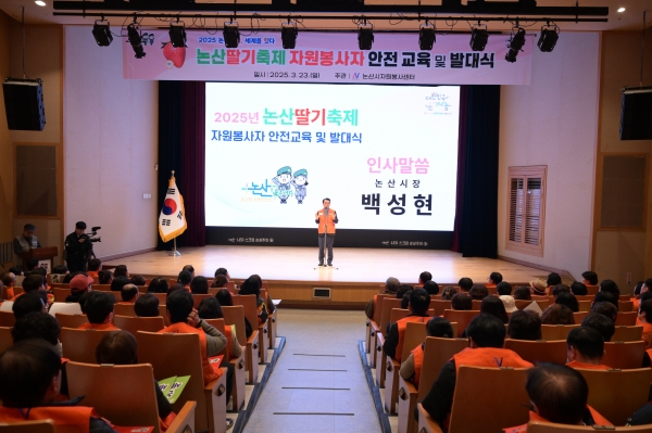 백성현 논산시장은 “축제장을 찾는 관광객들을 위한 자원봉사자의 밝은 미소와 친절이 딸기축제가 성공적으로 개최되는 데 큰 힘이 될 것으로 믿는다”며 “올해도 성공적인 축제가 될 수 있도록 함께 노력해 달라”고 말했다.