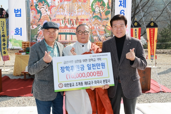 조신영 금산교육사랑장학재단 이사장은 “마곡사의 따뜻한 나눔이 지역 학생들에게 큰 힘이 될 것”이라며 “학생들이 학업에 정진할 수 있도록 소중히 사용하겠다”고 전했다.