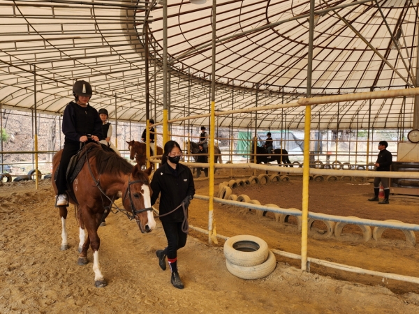 이후 아산시와 지정협약을 맺은 충무승마장으로 이동해 기초 승마 교육 및 권승경기, 말과의 교감 등 다양한 승마체험을 진행하며 인내심과 자신감을 기르고 말산업 학과 진학 및 직업에 대한 진로 탐색의 시간도 가졌다.
