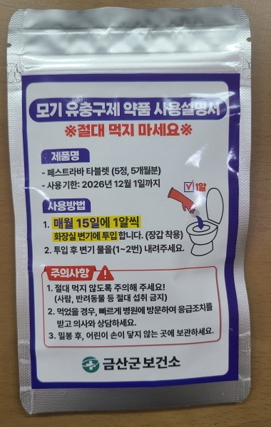 금산군, 방역 효과 극대화 모기 유충구제 약품 3000개 배부