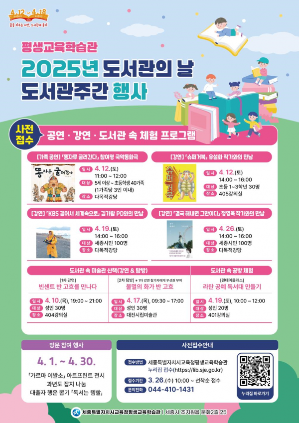 [Ytv영상스토리] 세종시교육청평생교육학습관에서는 2025년 4월 12일 도서관의 날을 맞이해 도서관 주간 행사를 개최한다.