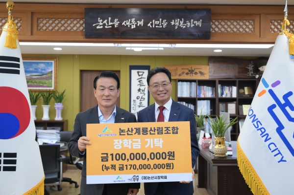 지난 2013년부터 꾸준히 기부를 이어오고 있는 논산계룡산림조합조합은 올해 1억원을 기탁하며 지금까지 총 1억 7천만원을 장학금으로 기탁했다.
