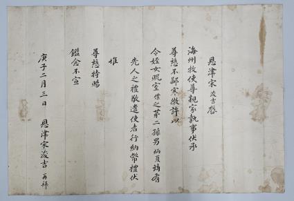 ‘혼서지’는 대전 출신 대유학자인 송준길이 직접 작성한 문서로 그의 둘째 손자 송병하가 해주목사 나성두의 조카와 혼인할 당시 작성한 것이다.