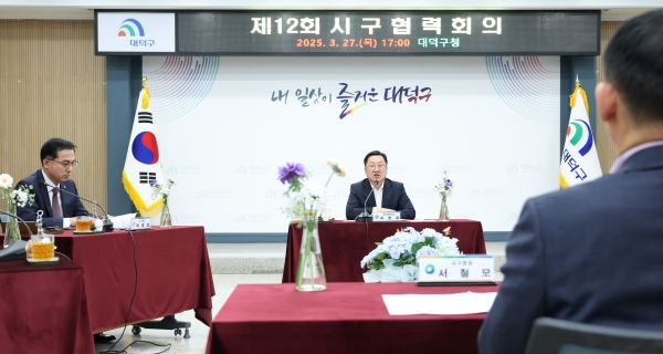 대전시는 27일 오후 대덕구청 대회의실에서 이장우 대전시장과 5개 자치구 구청장이 참석한 가운데 ‘제12회 시구협력회의’를 개최하고 시-구가 공동으로 추진할 13건의 안건에 대해 심도 있는 논의를 진행했다.