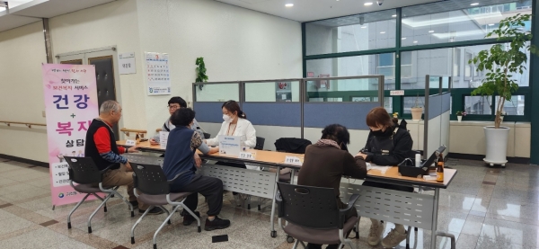 괴정동 행정복지센터 복지팀과 지역사회보장협의체가 협력해 용문종합사회복지관을 찾아가 주민의 건강 상태 확인 및 보건복지 상담 서비스를 제공하는데, 주민 건강과 삶의 질 향상을 목표로 한다.