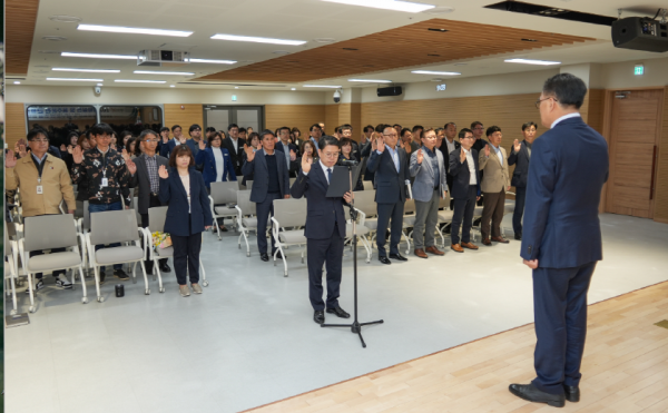 결의대회 후에는 직원들이 직접 출연하고 자발적으로 제작한 ‘갑질 근절 및 청렴 실천’을 주제로 한 청렴 홍보영상을 함께 시청하며 청렴에 대한 공감대와 실천 의지를 공유했다.