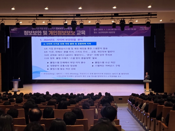 정보보안 분야에서는 논산시 사이버침해대응센터 소속 문세광 정보보안 전문가가 최신 보안 동향을 소개하고 실무에서 적용 가능한 보안 수칙 및 예방 조치를 안내했다.