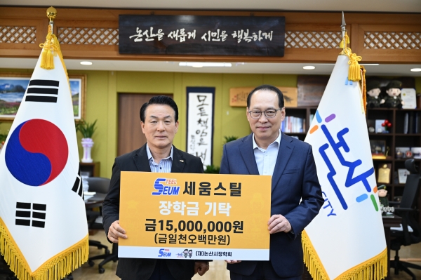 또한, 같은 날 주식회사 세움스틸 김중윤 대표도 1천5백만원 상당의 장학금을 기탁하며 “경제적인 부담으로 인해 학업을 포기하는 일이 없도록 학생들이 학업과 꿈을 향해 한 걸음 더 나아가는 데 보탬이 되고 싶다”고 말했다.