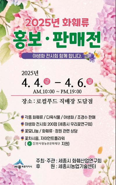 [Ytv영상스토리] 세종시 화훼산업연구회가 오는 4∼6일 3일간 로컬푸드 직매장 도담점에서 지역 화훼산업 활성화와 꽃 소비 촉진을 위한 ‘2025년 세종 화훼류 홍보판매전’을 개최한다.