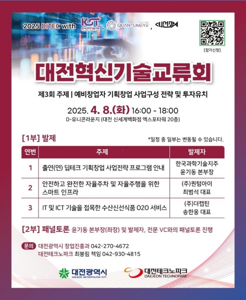 [Ytv영상스토리] 대전시는 오는 4월 8일 대전신세계 엑스포타워 20층 D-유니콘라운지에서 2025년 제3회‘대전혁신기술교류회’를 개최한다.