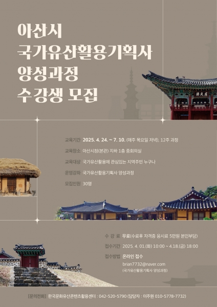 아산시, 국가유산활용기획사 양성과정 수강생 모집