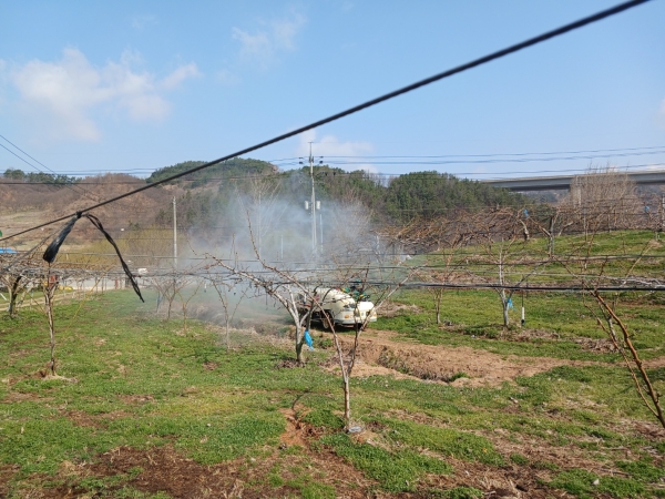 시는 각 농장별 개화 시기가 상이할 수 있으므로 각 농장의 개화 상태를 확인해 과수원 꽃이 절반 정도 피었을 때 1차 약제를 살포하고 5일에서 7일 후 2차 약제를 살포할 것을 권장했다.