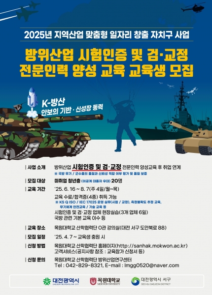 대전 서구, K-방산 방위사업 인증 전문인력 교육생 모집