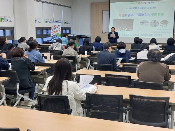 연수 내용은 아산시 신창면 마을교육 사례를 시작으로 △ 미래 사회와 교육의 전환, △ 지속 가능한 지역교육 생태계 구축, △ 마을교사의 역할과 소양, △ 아산마을교육네트워크 운영 사례, △ 마을학교 운영, △ 생성형 AI를 비롯한 온라인 도구 활용, △ 아산과 천안의 마을교육공동체 간 교류, △ 지역교육 현안 토론회, △ 중간지원조직 운영 사례 등으로 준비했다.