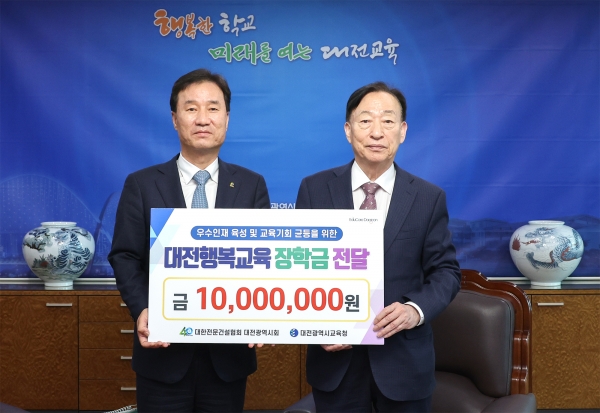 대전교육청, 대한전문건설협회 대전광역시회로부터 장학금 1,000만원 기탁받아